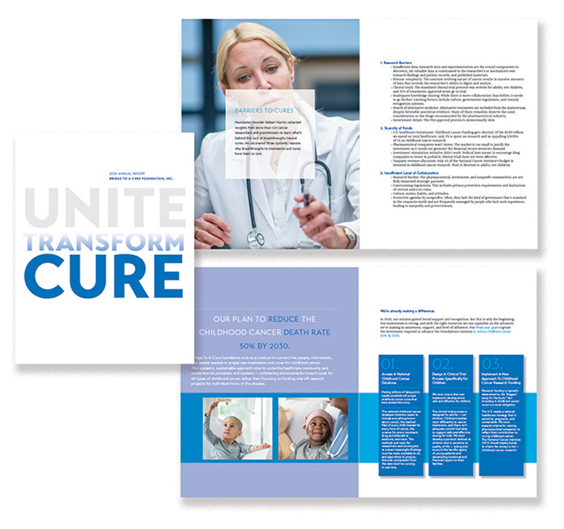 The team went to work to conduct research and clearly define the brand’s core strengths, values and beliefs, its brand position, and five distinct target audiences: donors, political influencers, the healthcare community, peer innovators and families touched by childhood cancer. Then, Rivet developed a 3-year marketing plan. From there, the brand’s distinctive creative identity was developed.
